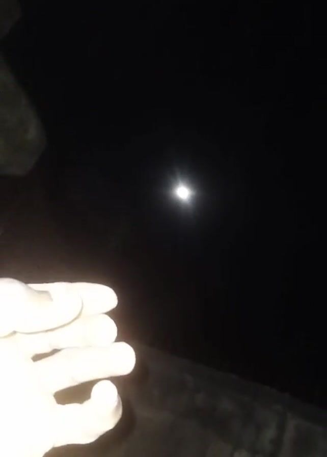 The video is a nighttime shot of a hand held in front of the moon