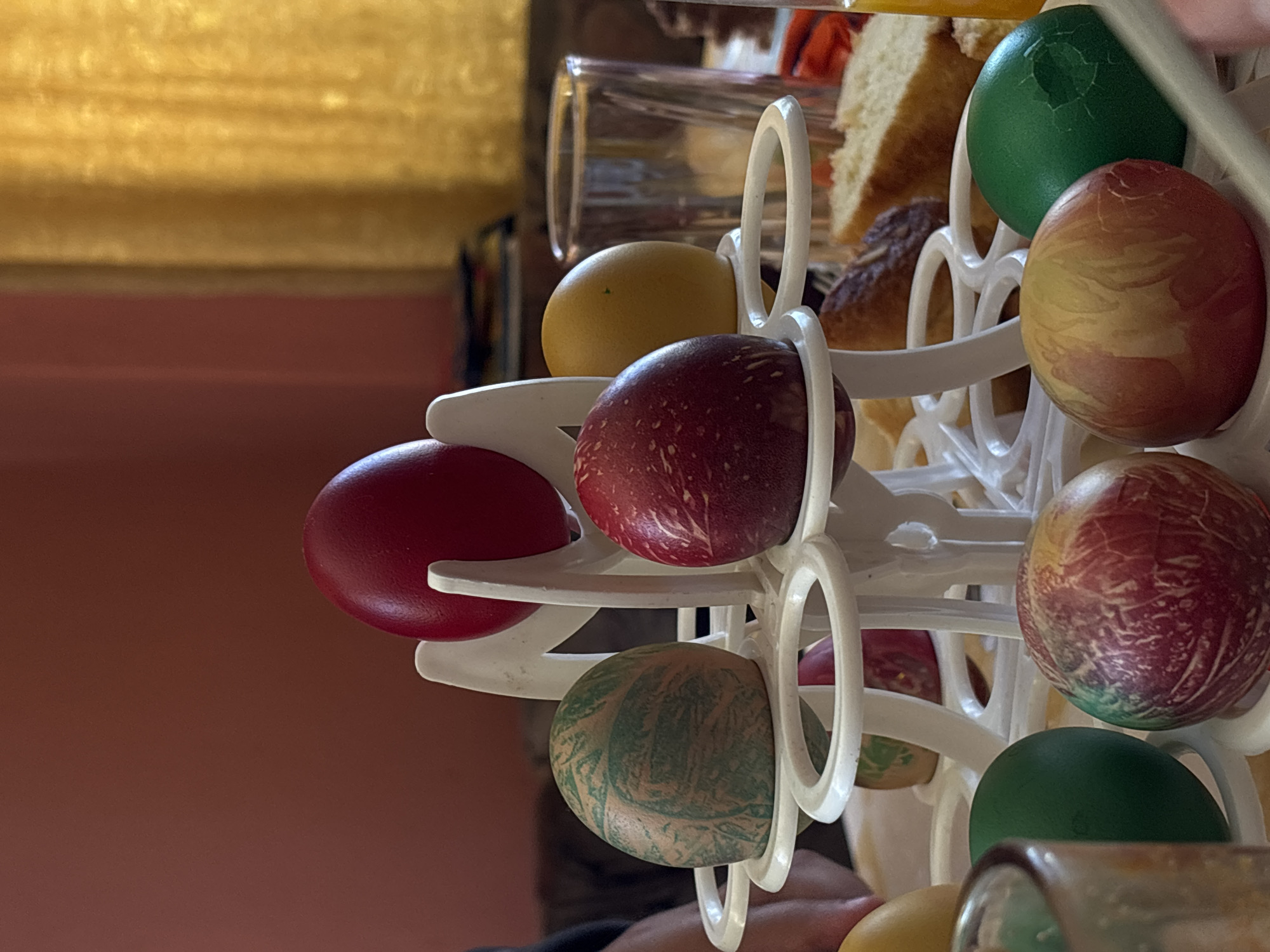 - "rotating egg holder with colored eggs, likely for Easter" by FM-UTn2l1, licensed under CC BY 4.0