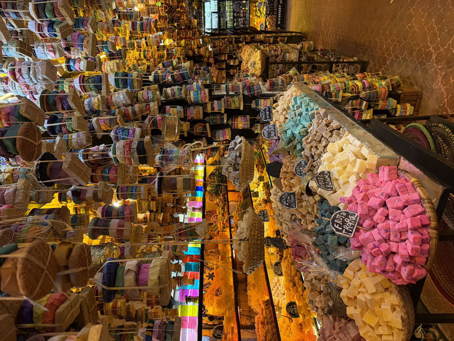 - "This image depicts the interior of a brightly lit market stall or shop, likely in Chefchaouen, Morocco, specializing in artisanal goods, specifically soaps" by FM-mbcfh1, licensed under CC BY 4.0