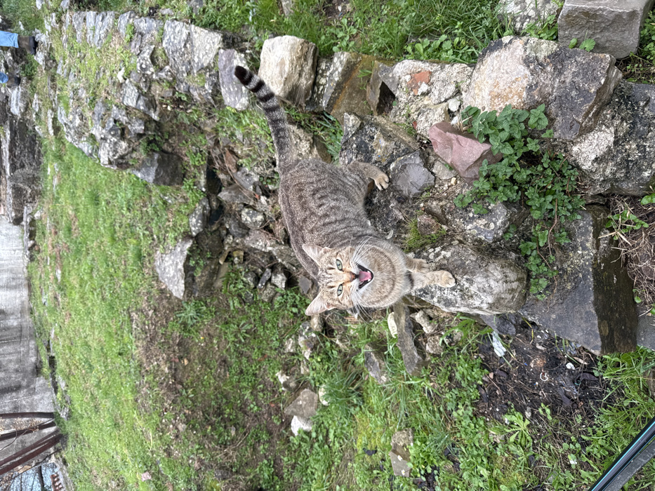 - "An outdoor scene in Dubravcevina, Montenegro, shows a brown, grey, and black striped tabby cat standing on a formation of irregular grey stones" by FM-fSbZr2, licensed under CC BY 4.0