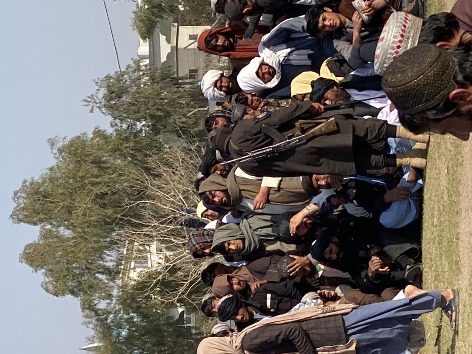 - "The scene depicts an outdoor gathering of numerous individuals, predominantly adult males, in an urban or peri-urban area of Kandahar, Afghanistan" by FM-B5wmg2, licensed under CC BY 4.0