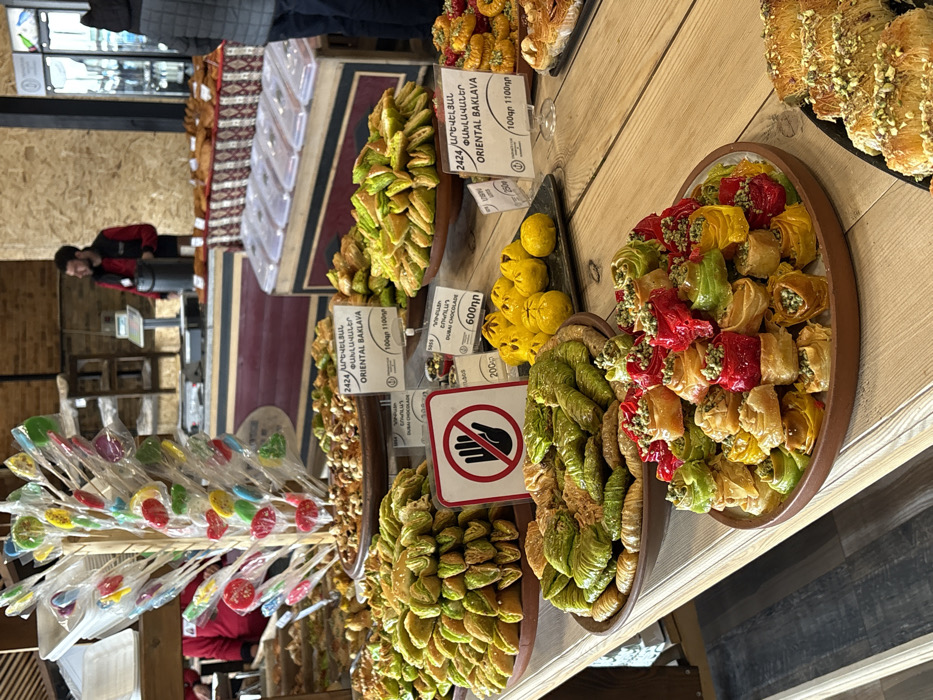 - "An indoor marketplace or shop in Tsovagyugh, Armenia, displays a wide variety of pastries and confections arranged on wooden counters" by FM-LN1lQ2, licensed under CC BY 4.0