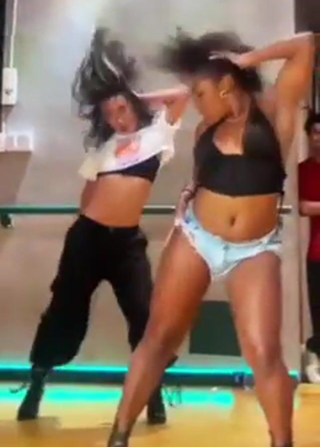 The video features two women dancing vigorously in a dance studio