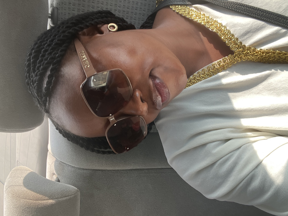 An adult female is depicted from the chest up, seated inside a vehicle in Ado, Nigeria