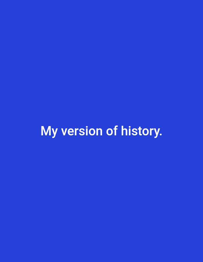 - "The image is a solid blue background with the text "My version of history" by FM-Vs7T72, licensed under CC BY 4.0