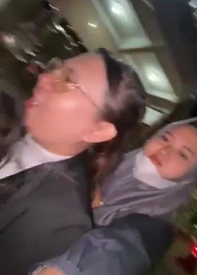 . The video starts with a quick shot of a pink wall and what appears to be ground with grass or foliage. Then the camera moves inside a car, where two women are visible. One of the women is wearing glasses and has her head resting on the lap of the other woman. The woman whose lap is being used is visible from the shoulders up. The woman with glasses speaks and appears to be looking upwards. The camera is in motion.