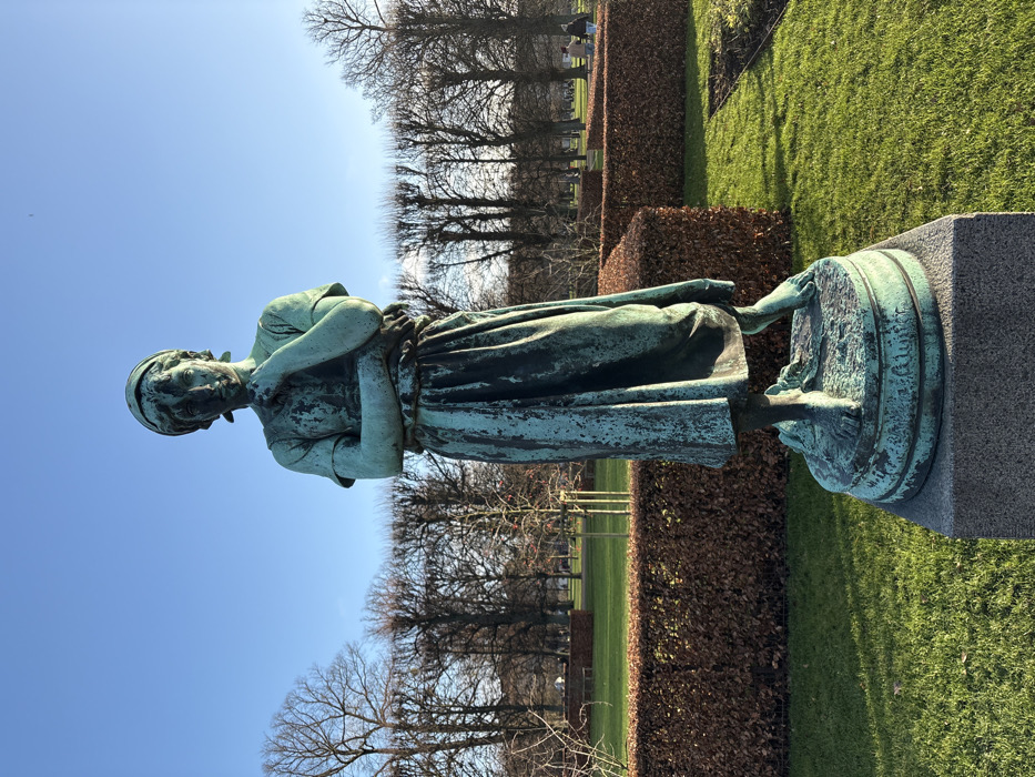 - "A full-body bronze statue of a young woman, significantly weathered with green verdigris, stands prominently on a gray granite plinth in Ørstedsparken, Copenhagen, Denmark" by FM-2nr0T2, licensed under CC BY 4.0
