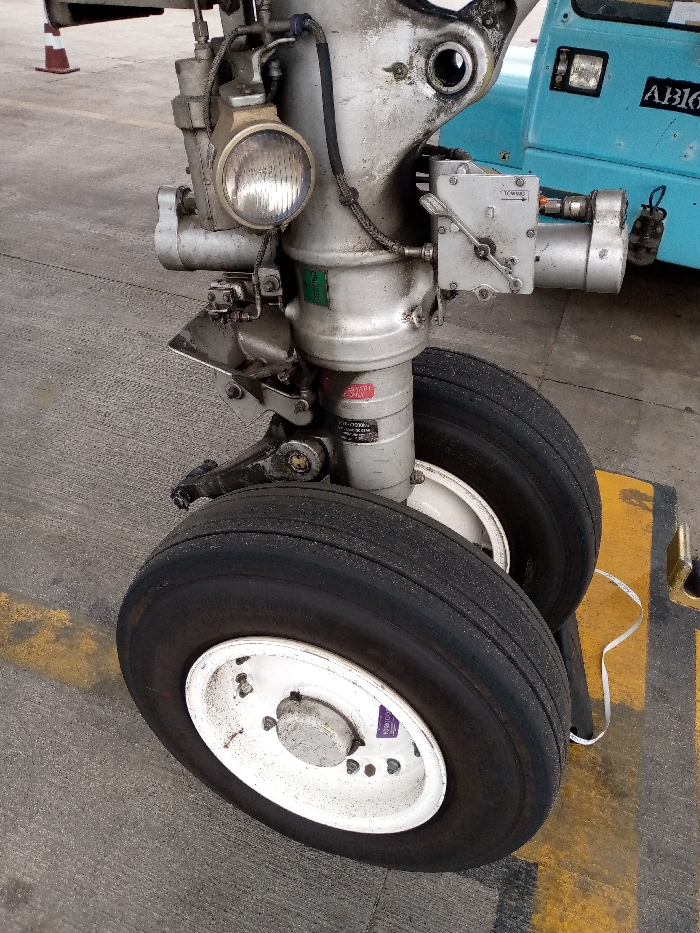 - "The image displays the nose landing gear assembly of an aircraft positioned on an airport tarmac in Unknown, Nigeria" by FM-iJhuu1, licensed under CC BY 4.0