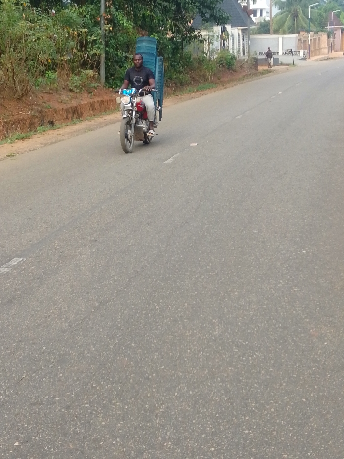 - "A male individual operates a red motorcycle on an asphalt road in Alor, Nigeria" by FM-0Io5k1, licensed under CC BY 4.0