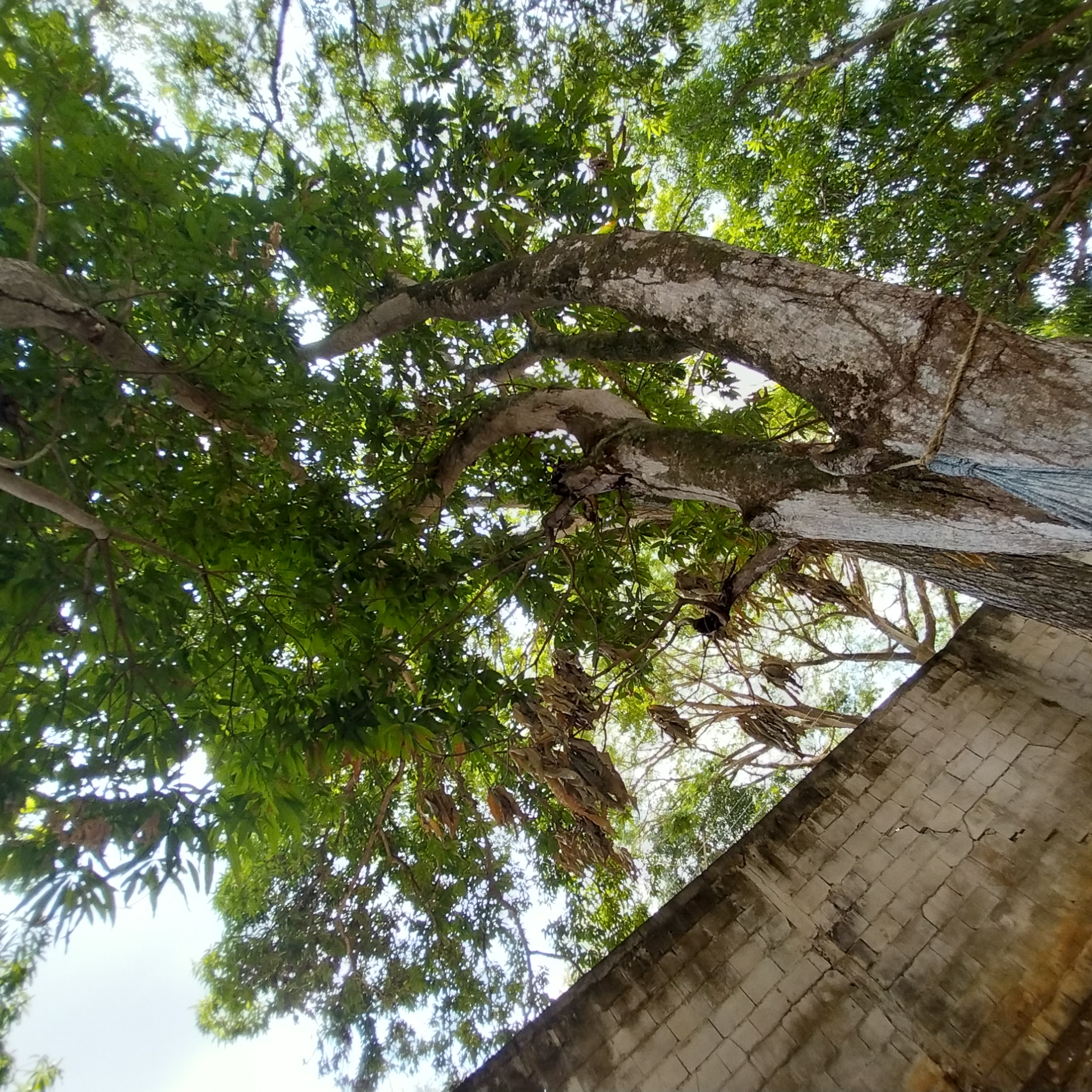 - "A low-angle shot shows a tree with dense green foliage above a wall" by FM-zBmG82, licensed under CC BY 4.0