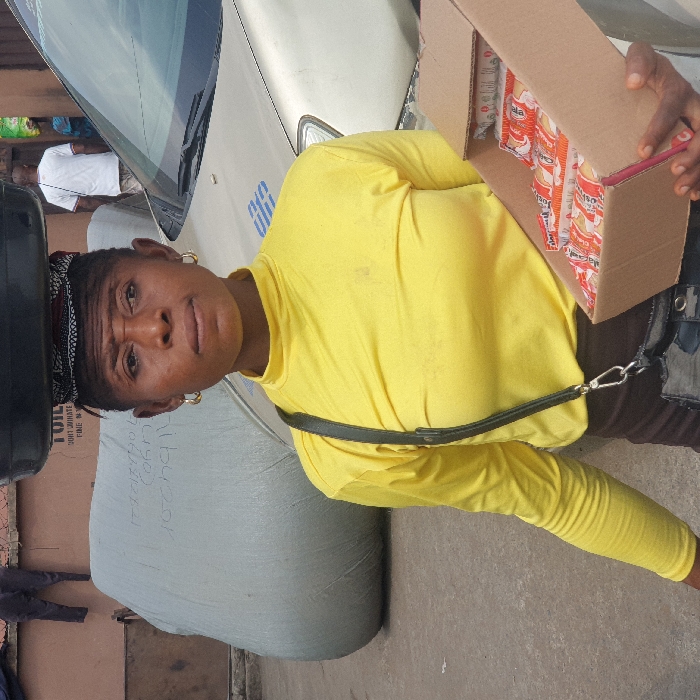 An adult female stands outdoors in Onitsha, Nigeria, appearing to be a street vendor