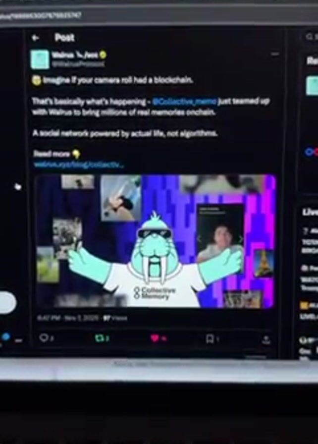 - "laptop screen displaying a Twitter post by Walrus Protocol announcing a collaboration with Collective Memory" by FM-SHEMl1, licensed under CC BY 4.0