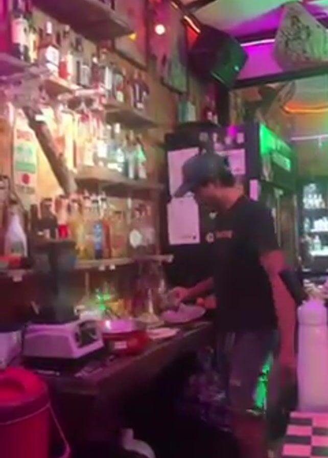 The scene is indoors, apparently in a bar