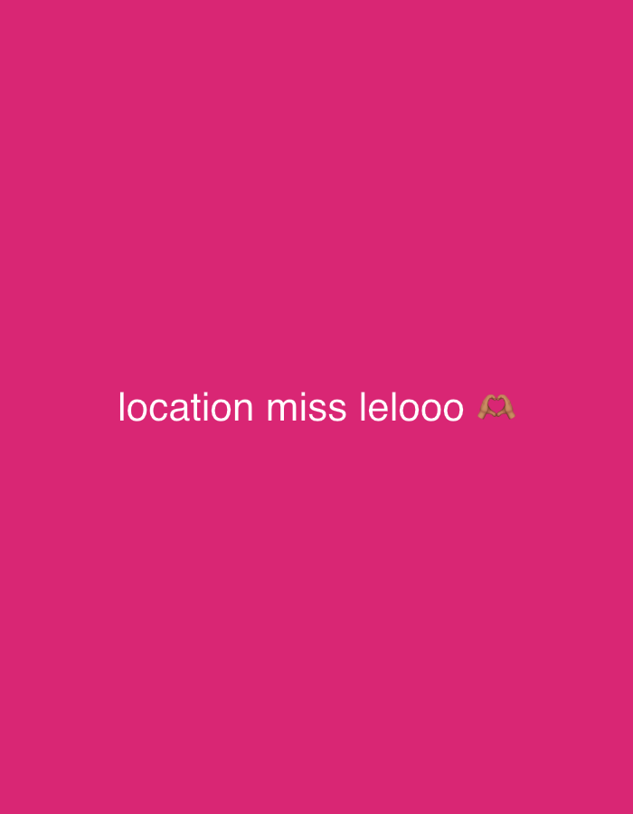 A fuschia background displays the text "location miss lelooo" with a hand heart emoji