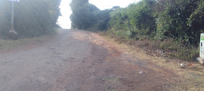 This image depicts an unpaved, dirt road ascending a gentle incline in Ewuaso Oonkidong'i ward, Kenya