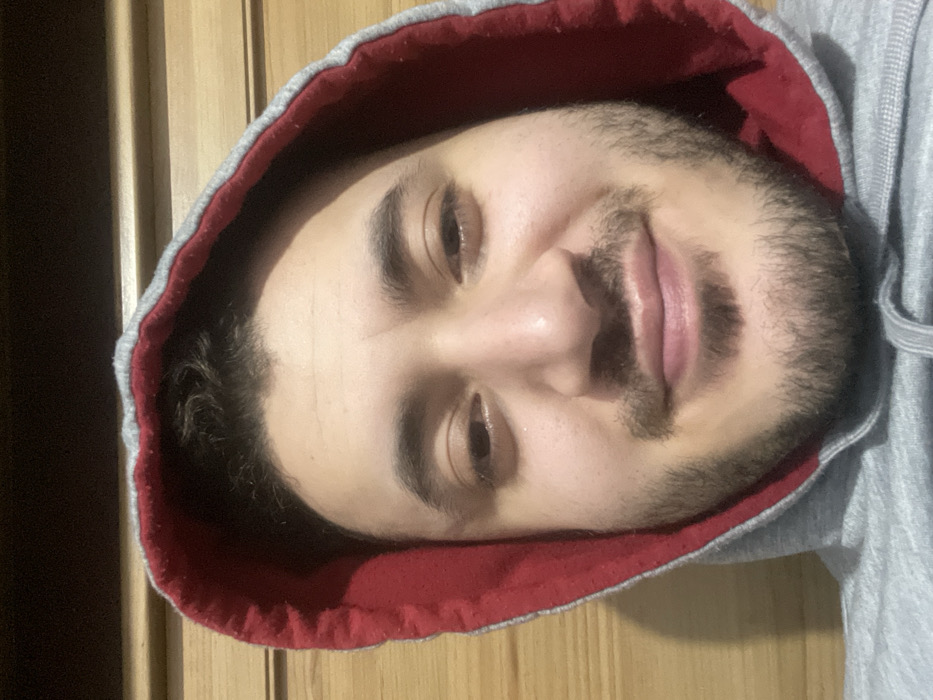 - "A light-skinned man with dark hair and a beard smiles while wearing a gray hoodie with a red lining" by FM-ekT8x1, licensed under CC BY 4.0