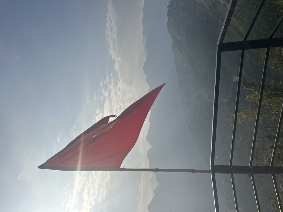 - "The scene, located in Minh Tân Commune, Vietnam, displays a red flag with a yellow five-pointed star, consistent with the Vietnamese national flag, flying from a bamboo pole" by FM-S4vcm1, licensed under CC BY 4.0