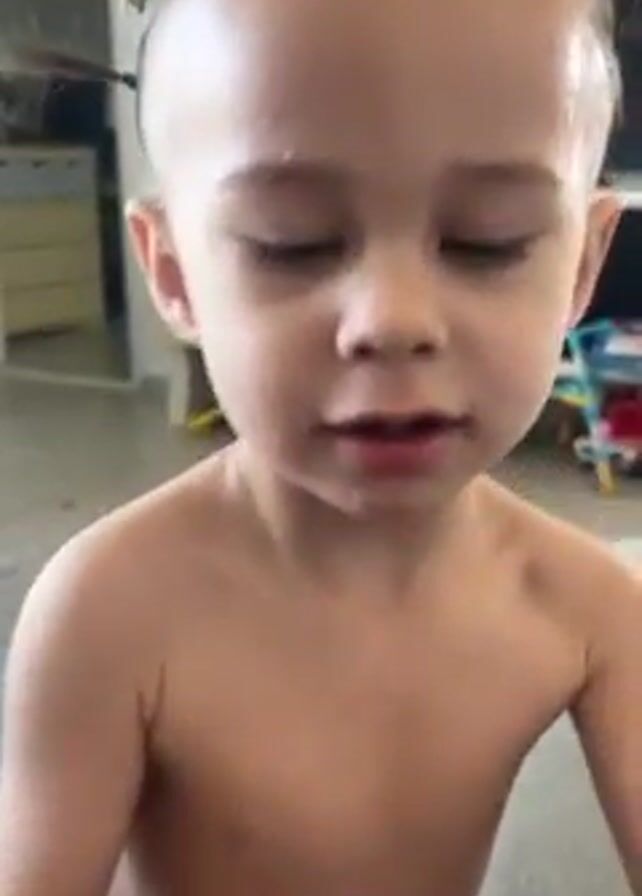 A small child, possibly a toddler, is shown shirtless and wearing a diaper