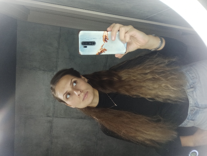 - "A female individual with long, wavy brown hair that lightens towards the ends is observed taking a mirror selfie in an indoor setting" by FM-ef61v1, licensed under CC BY 4.0