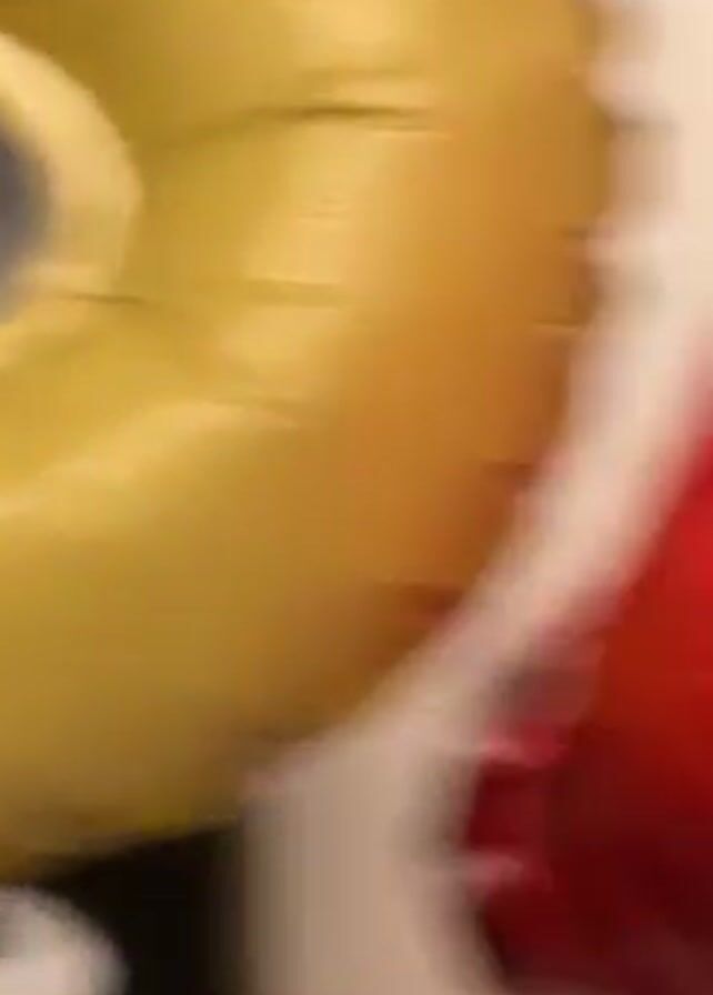 collection of inflated balloons, with some partially obscured by others. Colors visible include teal, grey, rose gold, yellow, orange, and clear. The clear balloons appear to contain confetti. The background consists of plain white or off-white walls. The camera movement is erratic and does not focus clearly on any single balloon for an extended period.