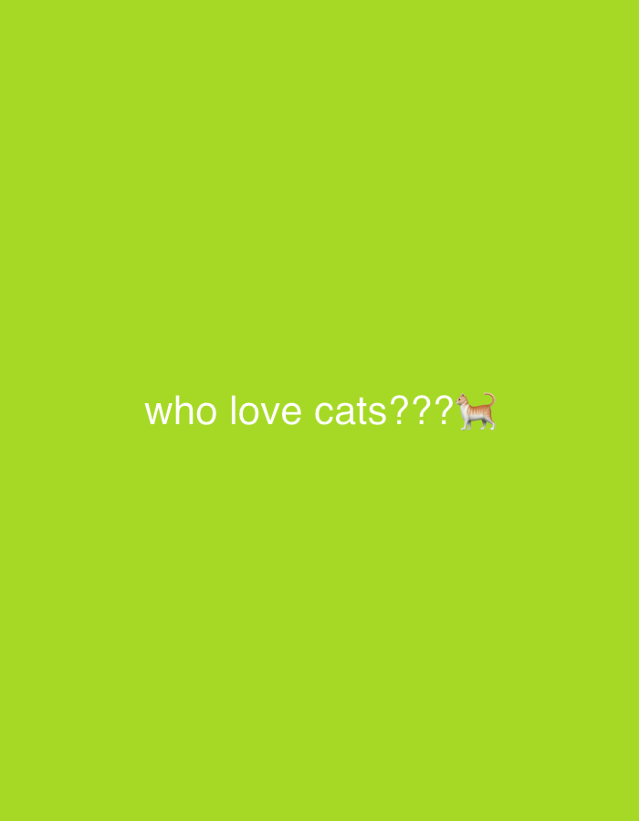 The image displays the question "who love cats???" in white text, accompanied by a cat emoji, set against a light green background.