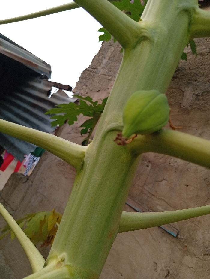 - "The image presents a close-up, upward-angled view of a light green papaya tree stem in Uyo, Nigeria" by FM-7gsdz2, licensed under CC BY 4.0