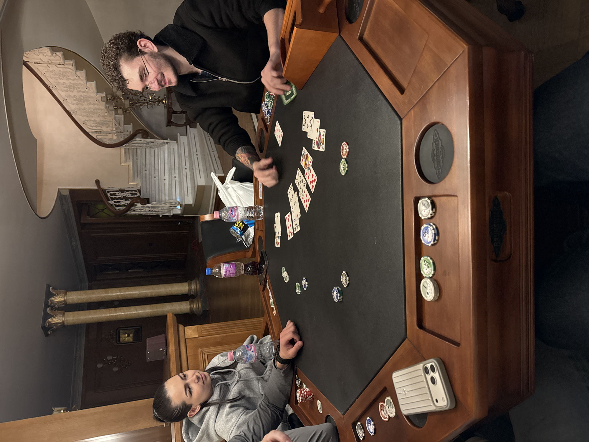 - "Two individuals are engaged in a poker game at a custom-built wooden poker table" by FM-nqtPq2, licensed under CC BY 4.0