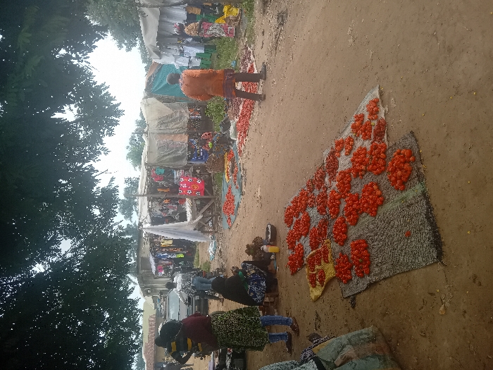 This image depicts an outdoor market scene in Unguwan Rimi, Nigeria