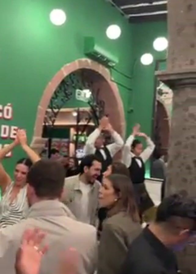 Here's a concise description of the video: The video shows a lively celebration at what appears to be a restaurant or bar