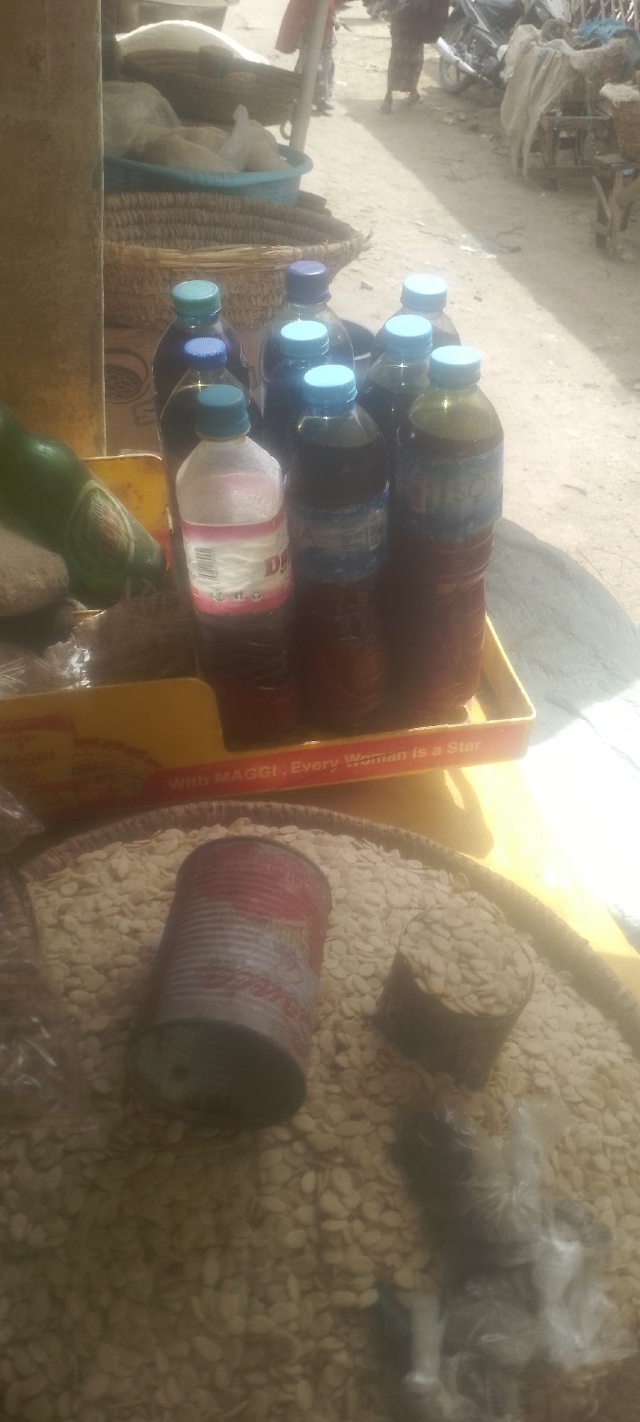 The scene depicts an outdoor market stall in Katsina, Nigeria, in the vicinity of Muhammadu Dikko Stadium