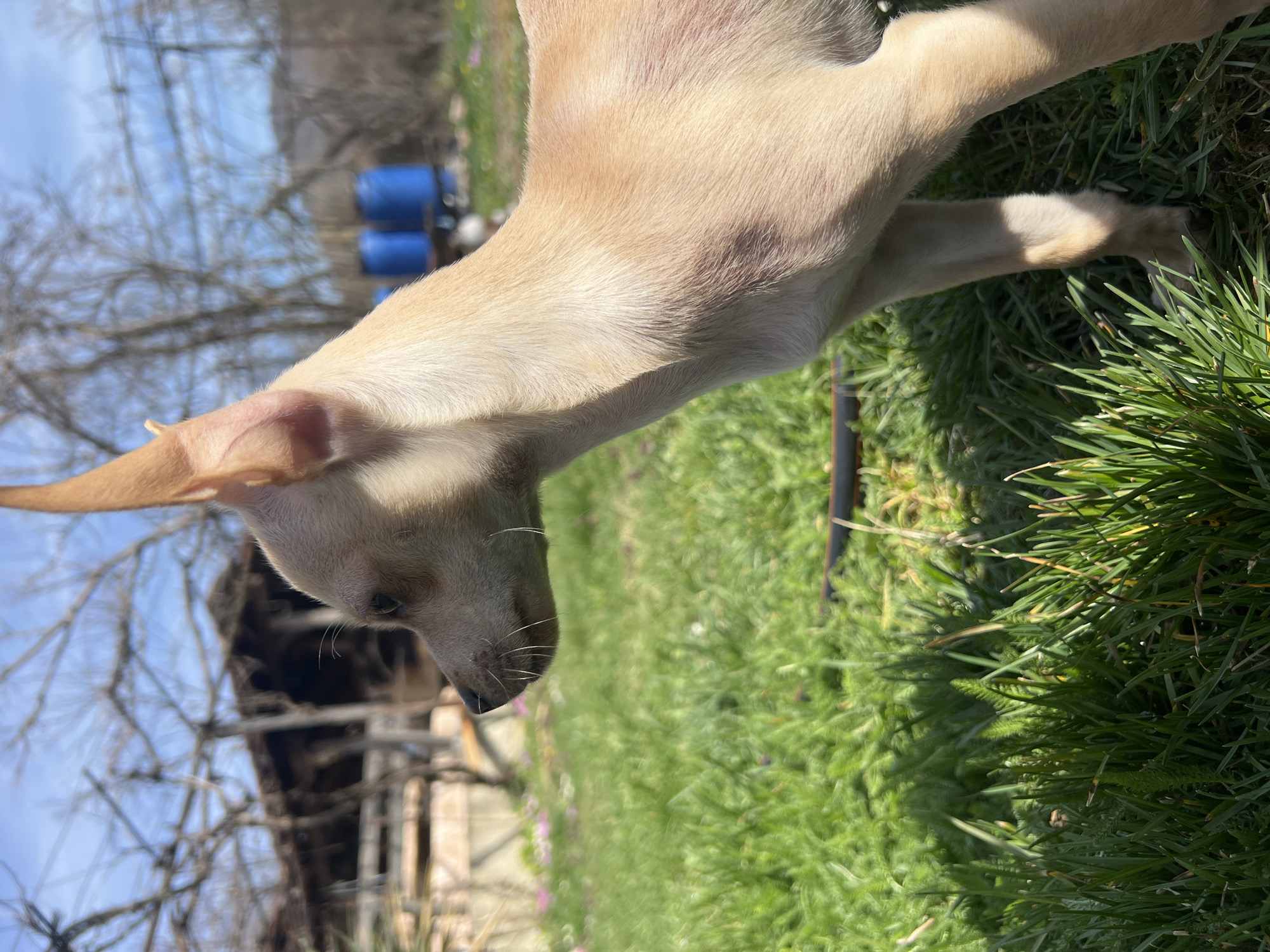 - "The image depicts a small, light fawn-colored dog, possibly a Chihuahua mix, standing outdoors in a grassy area in Gurkovo, Bulgaria" by FM-vJR2C2, licensed under CC BY 4.0