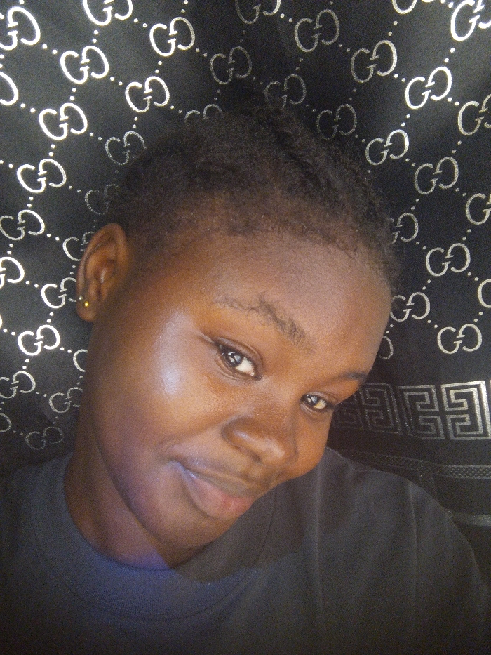 A close-up portrait depicts a female individual of dark complexion, positioned indoors in Keffi, Nigeria