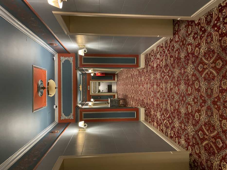 A long hallway with intricate design elements
