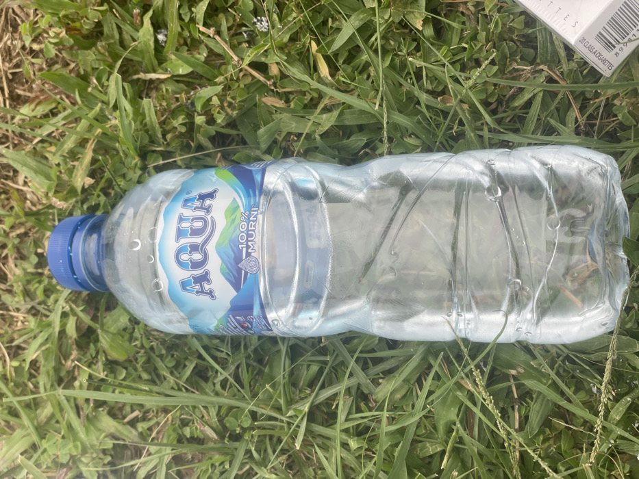- "The scene, located in Alue Mangki, Indonesia, depicts a clear plastic AQUA brand mineral water bottle resting horizontally on a patch of green grass and low-lying vegetation" by FM-56aBo1, licensed under CC BY 4.0