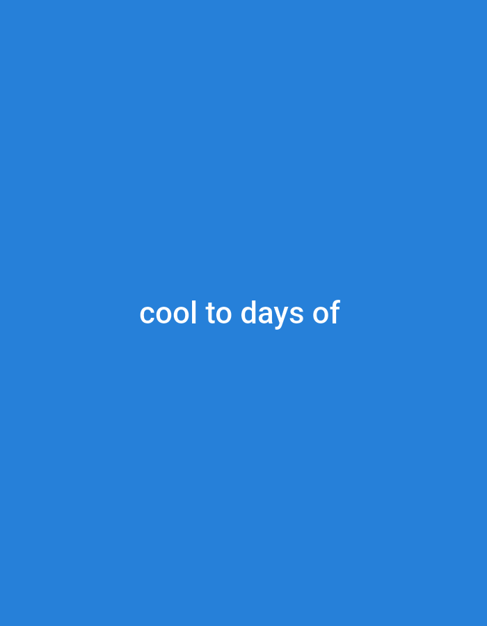 The image is a solid field of medium-blue. Centered horizontally and vertically is the text "cool to days of" in a plain, sans-serif font. The text is a contrasting white color, providing high visibility against the blue background. The layout is clean and minimal.