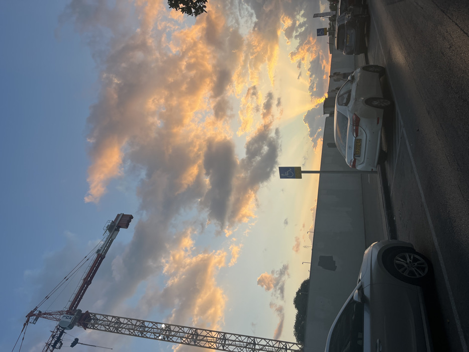 - "The image depicts an urban scene in Tel Aviv, Israel, during either sunrise or sunset, characterized by a blue sky with scattered clouds illuminated in shades of orange and pink by the low sun, from which crepuscular rays emanate on the right" by FM-dAsLf1, licensed under CC BY 4.0