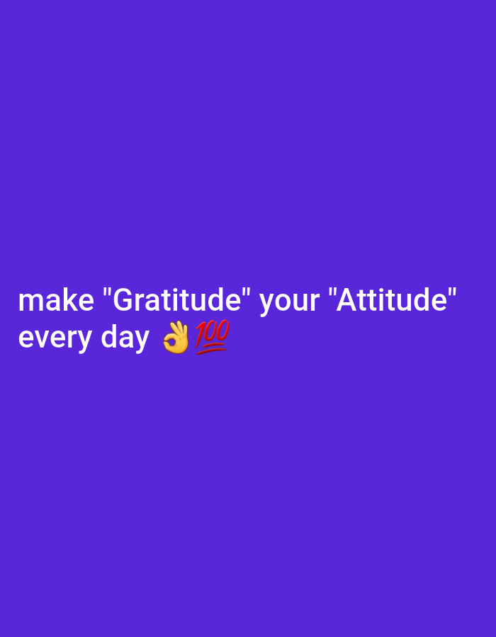 A digital graphic is presented against a solid, uniform purple background. Centrally aligned white sans-serif text reads: 'make "Gratitude" your "Attitude" every day'. Following the text, two emojis are displayed: a yellow hand making an 'OK' gesture (👌) and a red '100' symbol (💯). No other visual elements, figures, or specific environmental features are discernible within the graphic, which is understood to be situated in the city of Kaninkon, Nigeria.