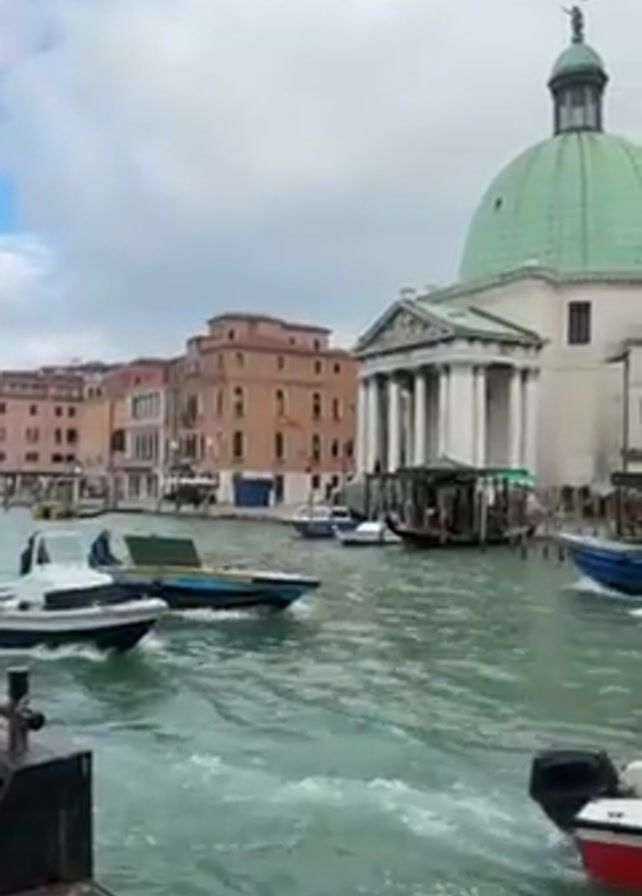 The scene is a waterway in Venice, Italy
