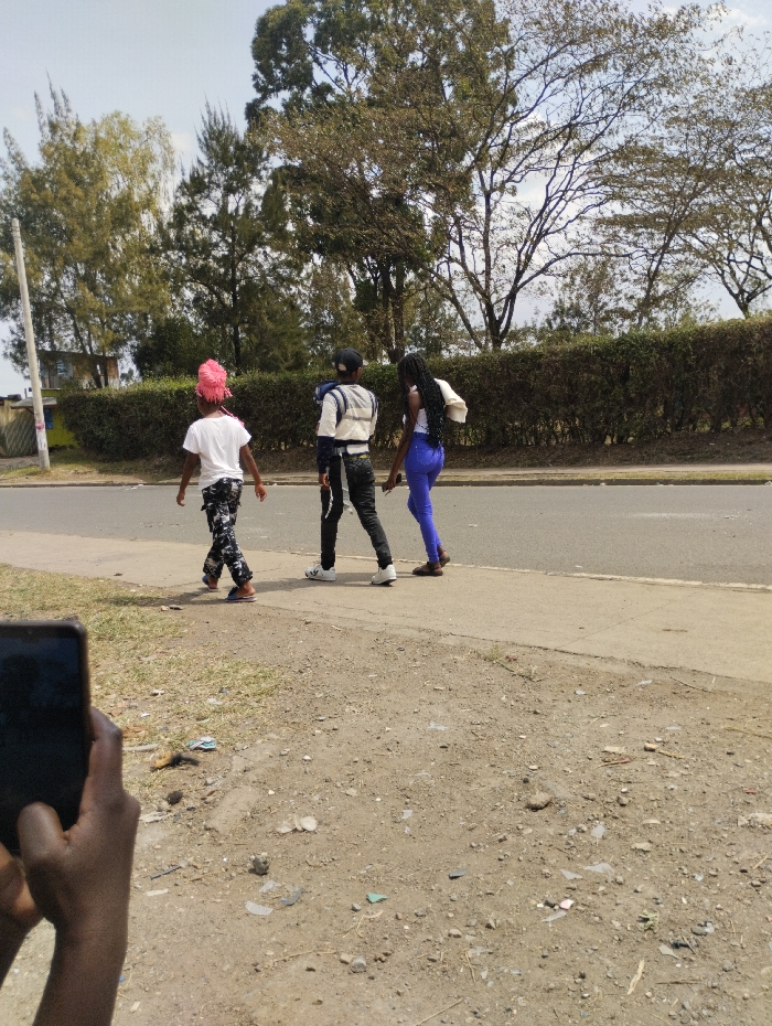 - "The image depicts three individuals walking on a paved pathway adjacent to an asphalt road in an unidentified area of Nairobi, Kenya, under a clear daytime sky" by FM-fmV4q1, licensed under CC BY 4.0