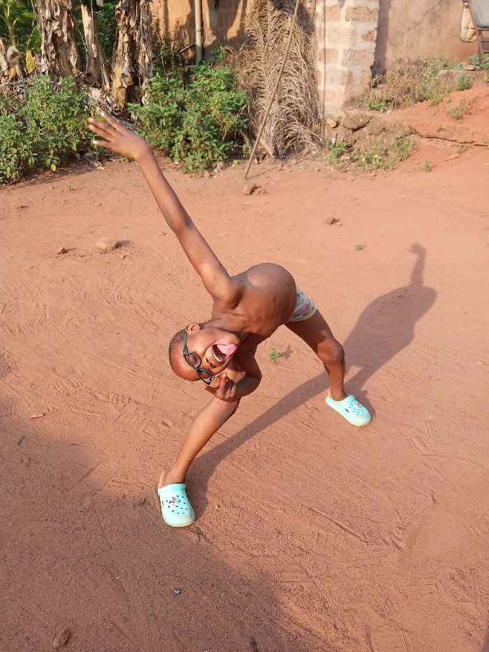 - "The image depicts a young Black male child in Okpatu-Ukehe, Nigeria, adopting a contorted, playful pose on reddish-brown dirt ground under bright sunlight" by FM-KVwpn1, licensed under CC BY 4.0