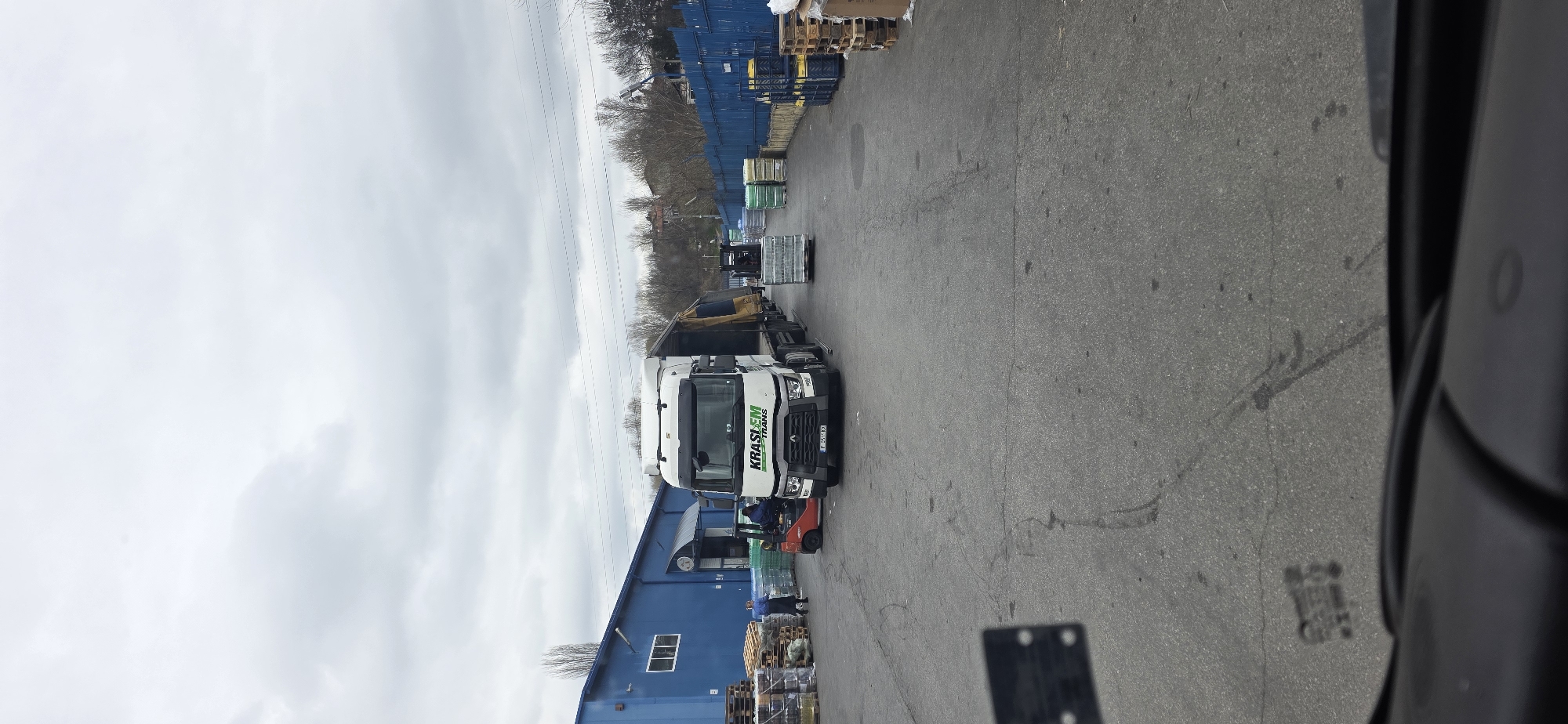 The image captures an industrial logistics yard under an overcast sky at Prof