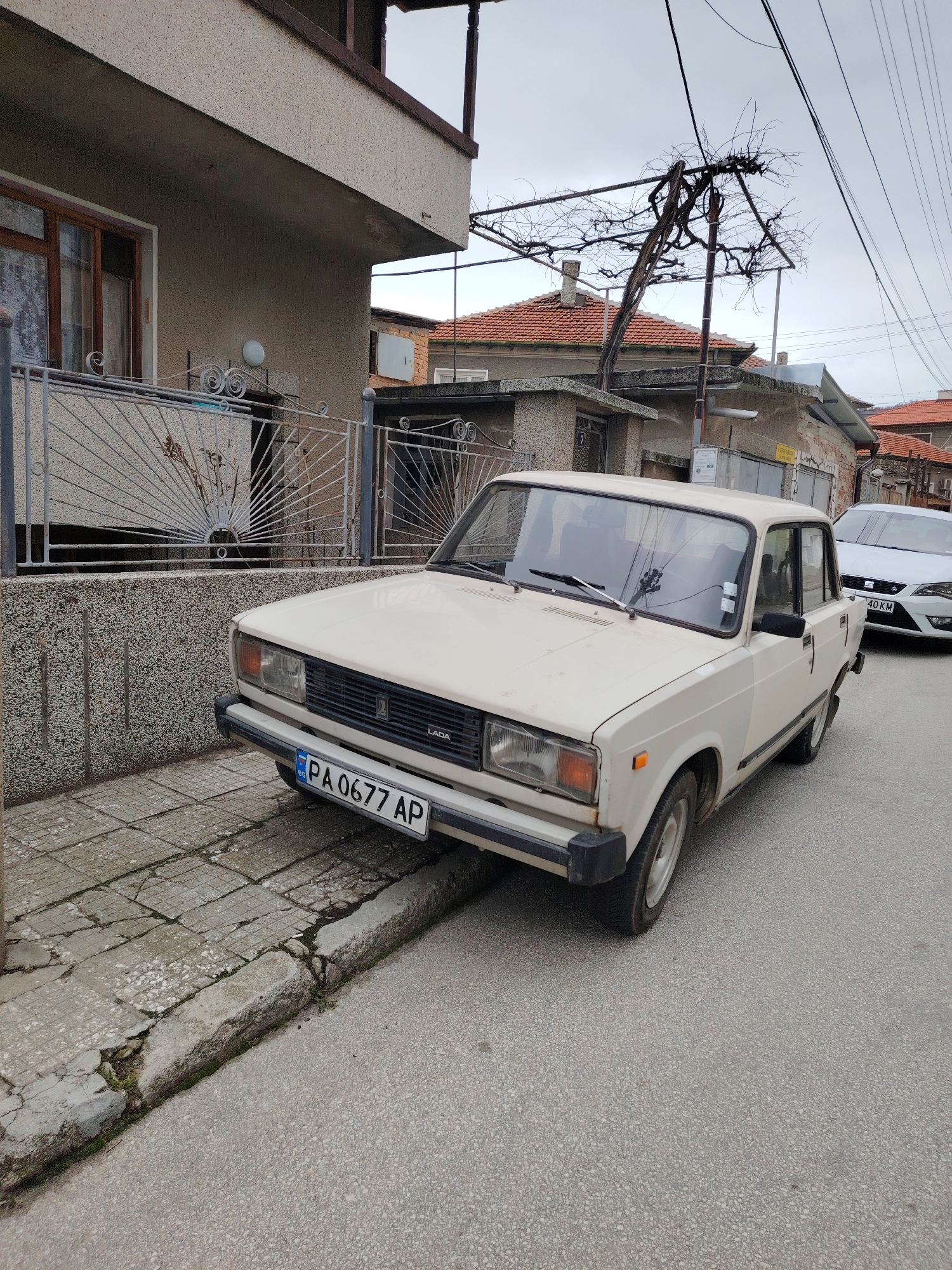 - "light-colored Lada car parked partially on the sidewalk in a residential street" by FM-gyP5C3, licensed under CC BY 4.0