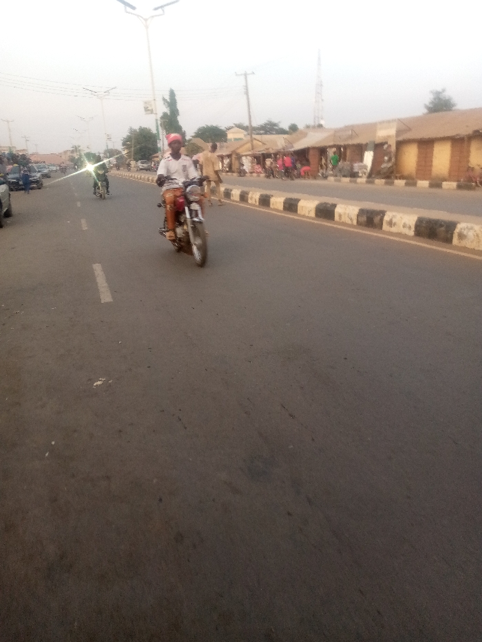 - "A sunlit streetscape features a person riding a motorcycle, occupying the center of the road" by FM-LgEEK2, licensed under CC BY 4.0