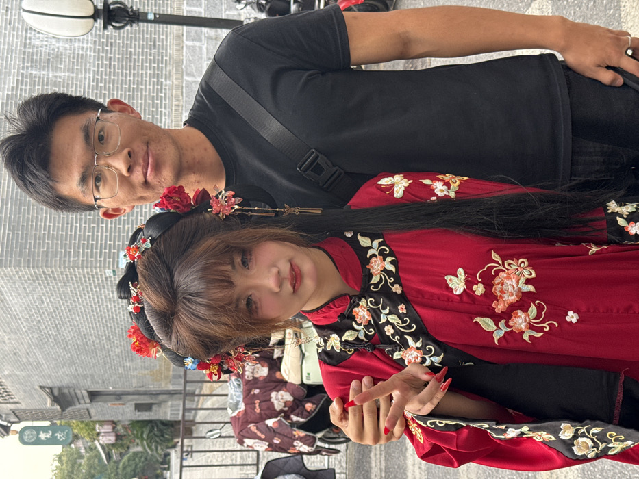 - "The image displays two East Asian individuals, a female and a male, posing for a photograph in an outdoor setting within Qinhuai District, China" by FM-K0Kp62, licensed under CC BY 4.0