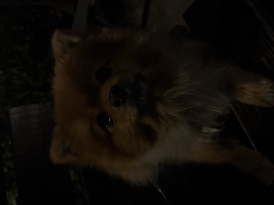 - "A fluffy, orange-brown Pomeranian dog is seated, facing forward, in a dimly lit environment within the city of Kyustendil, Bulgaria" by FM-MNpyC2, licensed under CC BY 4.0