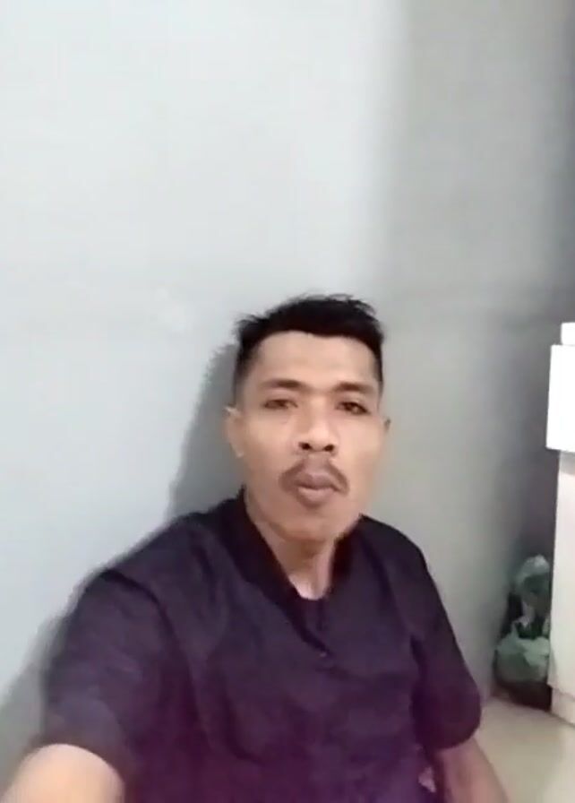 A man is centered in the frame against a light gray or off-white wall. He has short, dark hair with a fade on the sides, and a trimmed mustache. He is wearing a black, button-down shirt and is looking directly at the camera. He is moving his lips slightly as though he were talking or about to speak. The lighting is slightly uneven, casting a shadow on the wall behind him.
