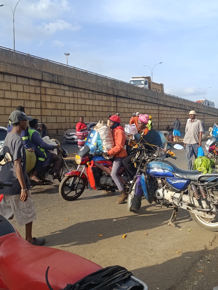 - "The image depicts a daytime street scene in Githurai, Kenya, situated at the base of a large, tan-colored concrete retaining wall that supports an elevated road or overpass" by FM-BGGAG2, licensed under CC BY 4.0