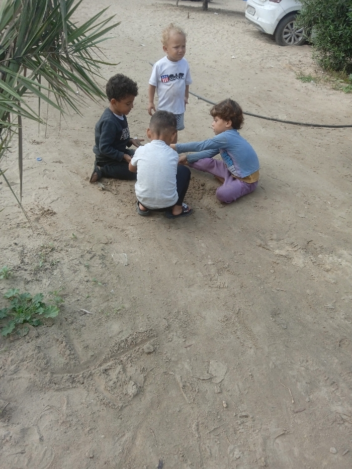 - "Four young children are situated on sandy, unpaved ground in what appears to be an outdoor setting in Al-Mawasi, Unknown" by FM-cV3b62, licensed under CC BY 4.0