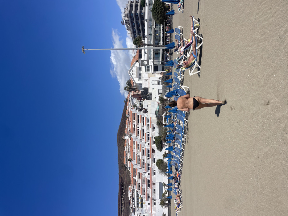 beach scene in Los Cristianos, Tenerife, Spain, at coordinates (latitude: 28
