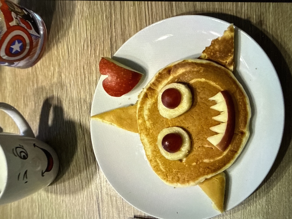 - "A white plate holds a whimsical pancake creation" by FM-z8OuP2, licensed under CC BY 4.0